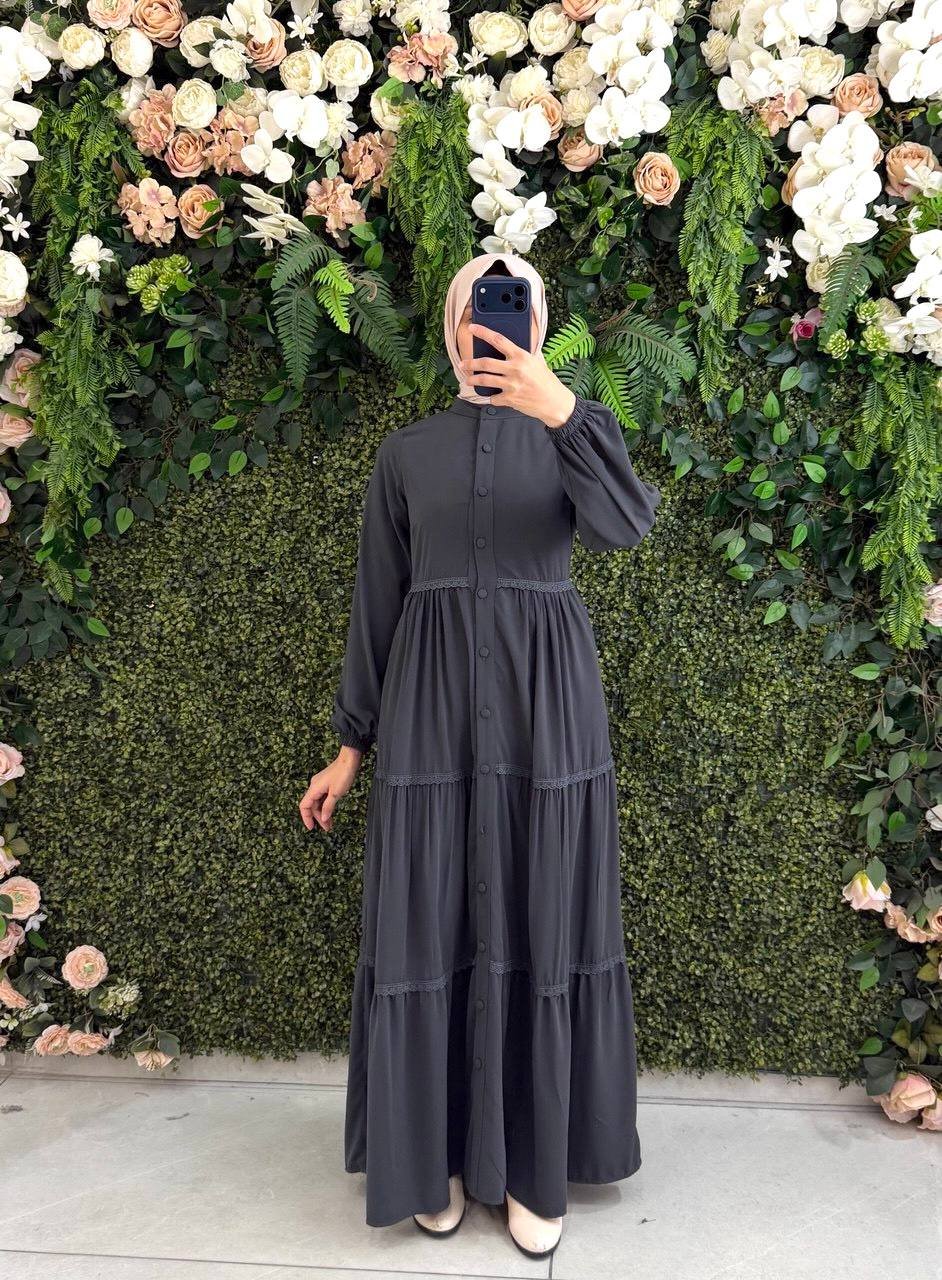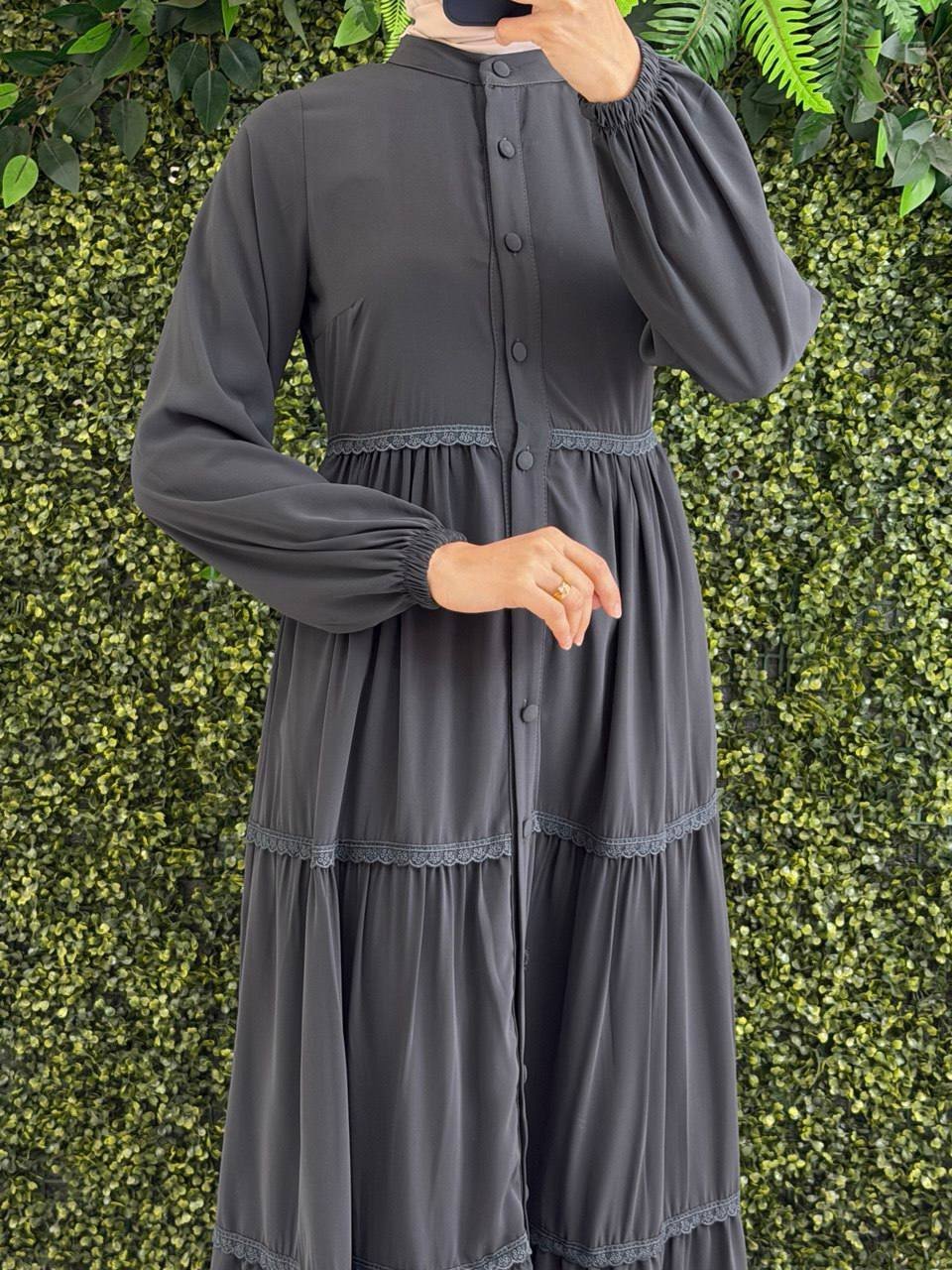 تألقي بأسلوب يجمع بين الرقي والراحة مع فستان “أريام” الجديد. يتميز هذا الفستان بتصميمه ذو الطبقات الانسيابية والأزرار الأمامية الأنيقة، ليمنحكِ إطلالة عصرية في كل الأوقات