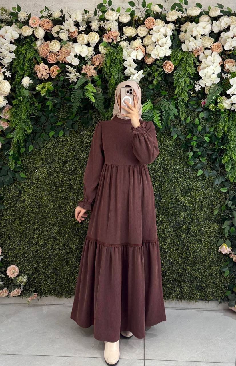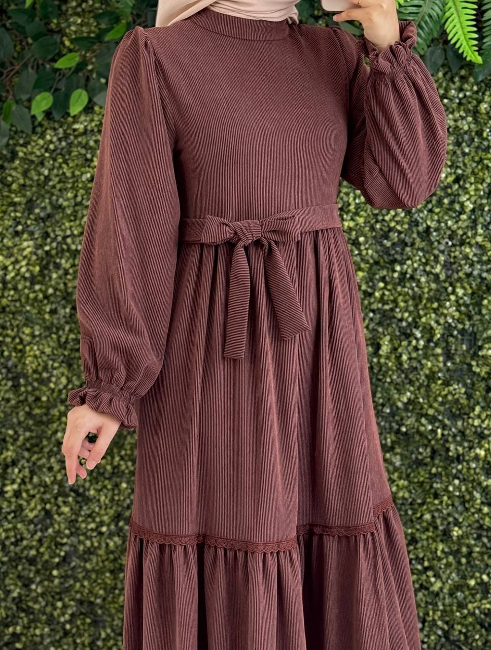 فستان بيسان مع حزام | بني