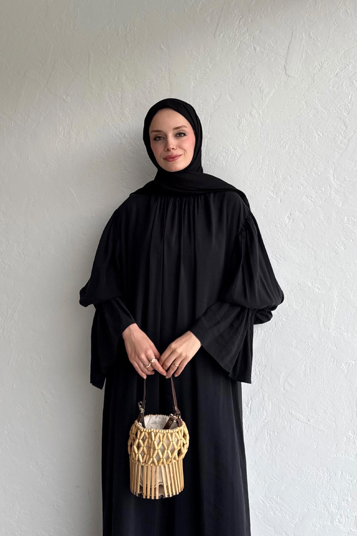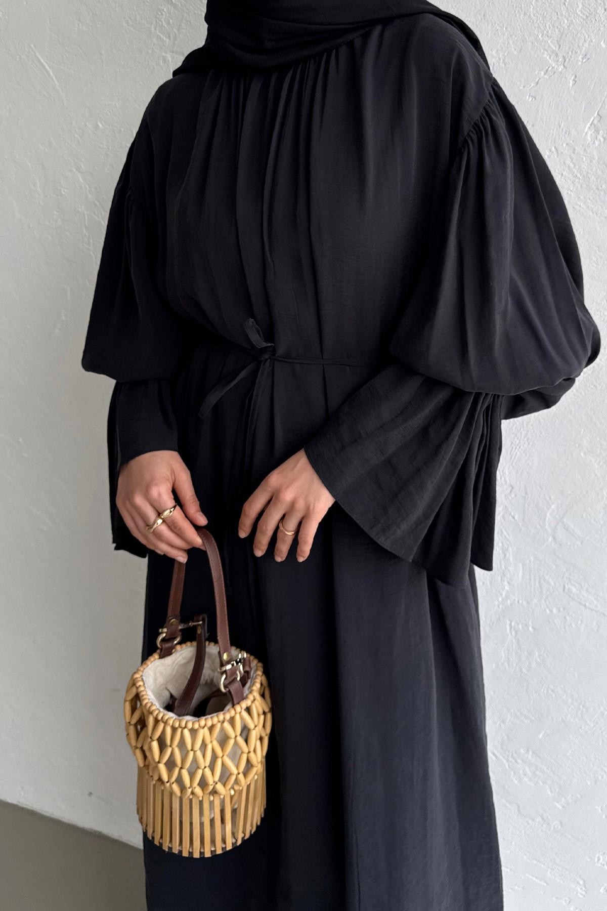 هذا الفستان مثال للأناقة والرتابة بلمسات ناعمة زي الحركة اللي على الأكمام وحزام متحرك بيبرز الخصر.