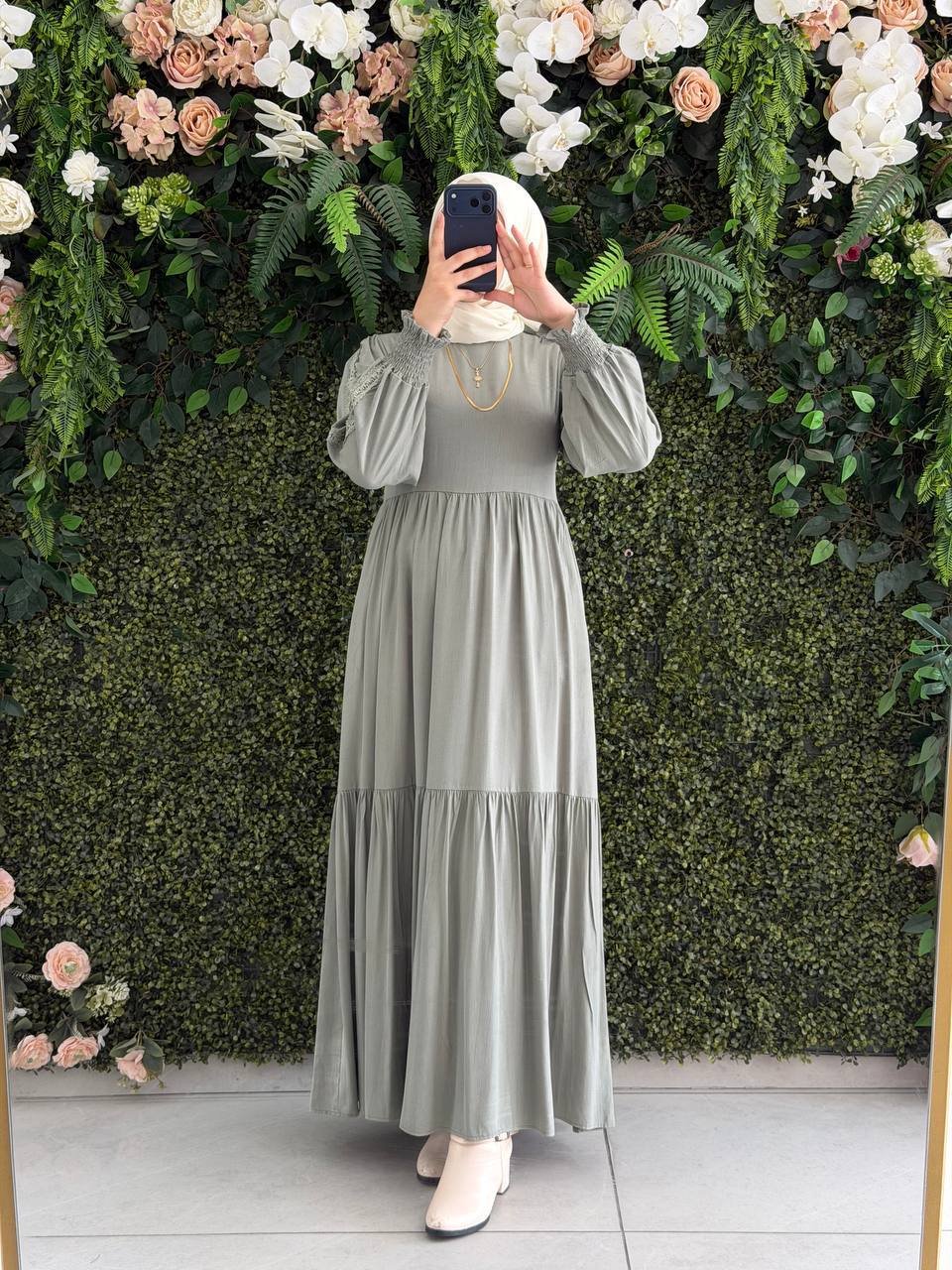 فستان هديل بقماش كوبرا الفخم مع حزام | أخضر منت