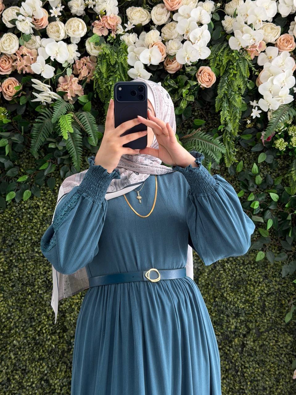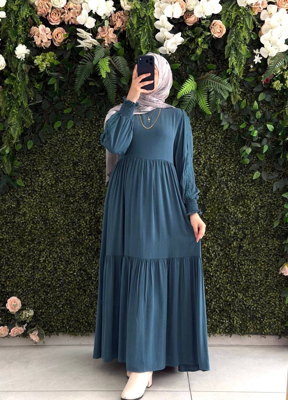 فستان هديل بقماش كوبرا الفخم مع حزام | تركوازفستان هديل بقماش كوبرا الفخم مع حزام | تركواز