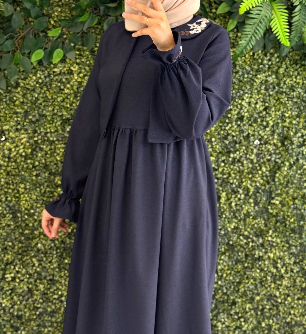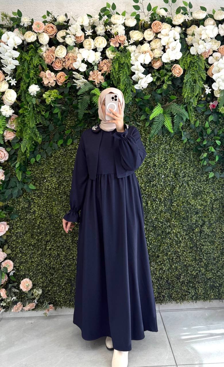 فستان لمار بتطريز الياقة والأكمام (ربيعي) | كحلي