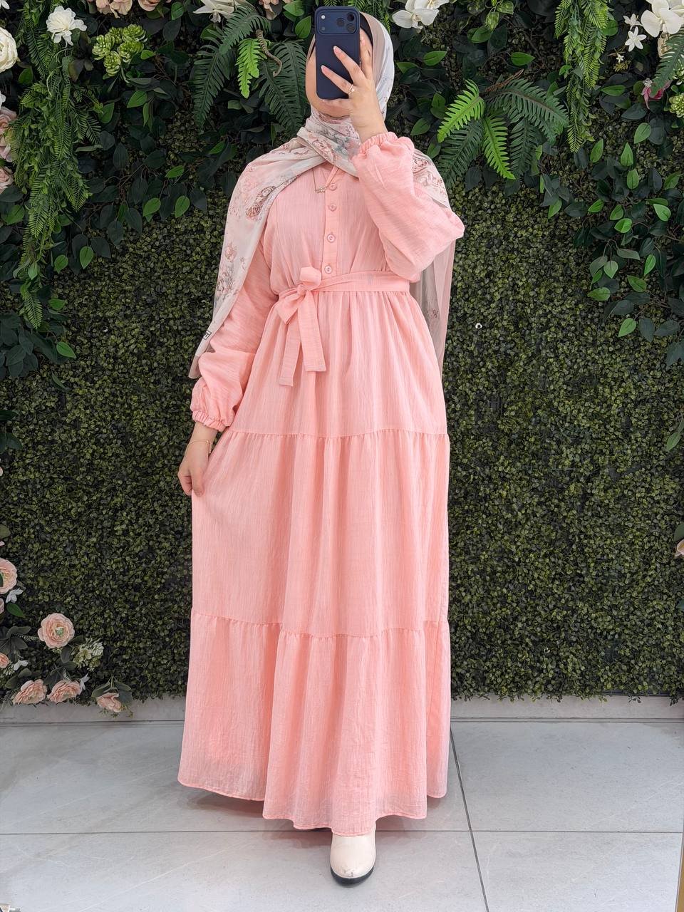 فستان ندى بألوان مميزة مبطن مع حزام | مشمشي