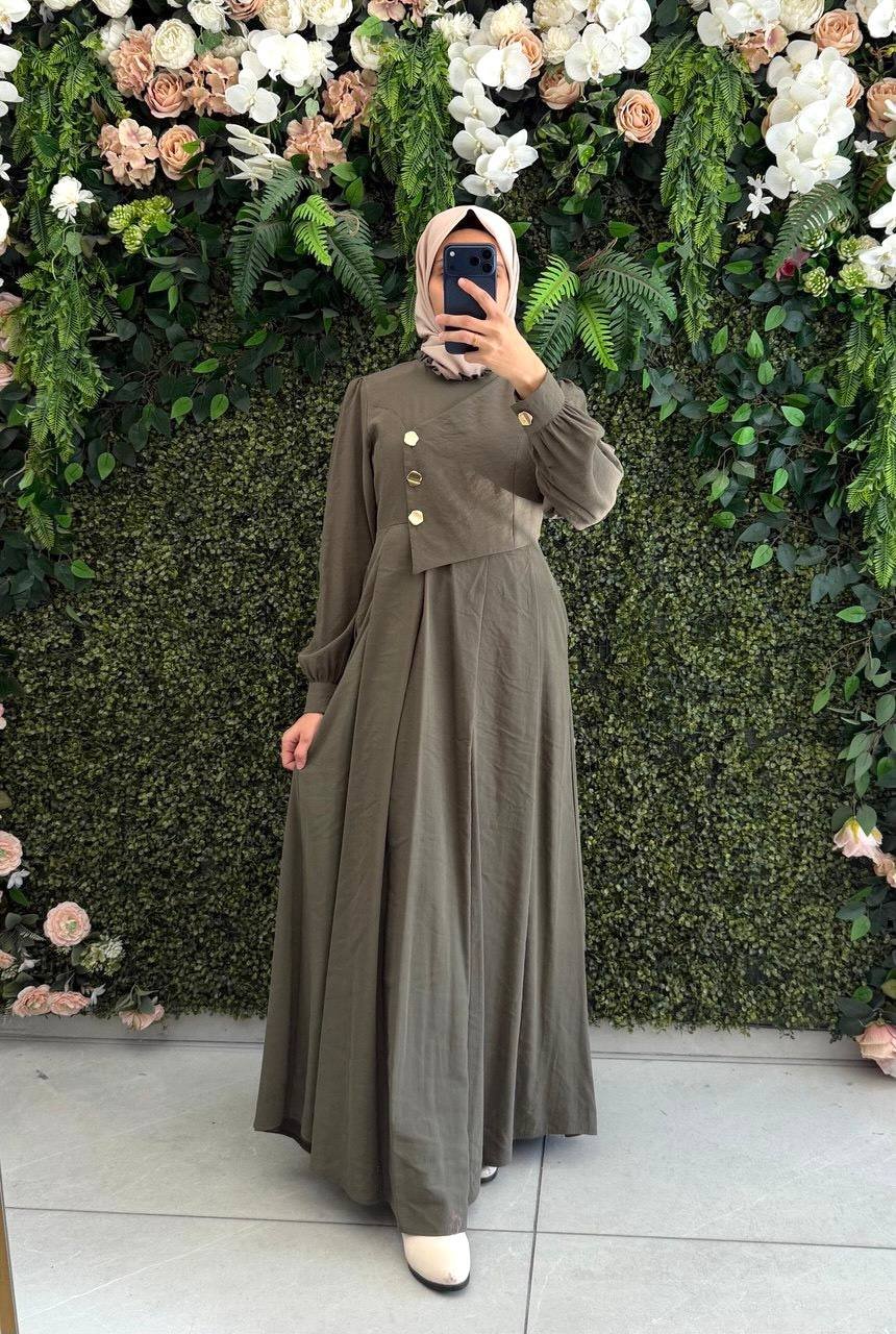 فستان نسيم أنيق مع أزرار جانبية | زيتيفستان نسيم أنيق مع أزرار جانبية | زيتي