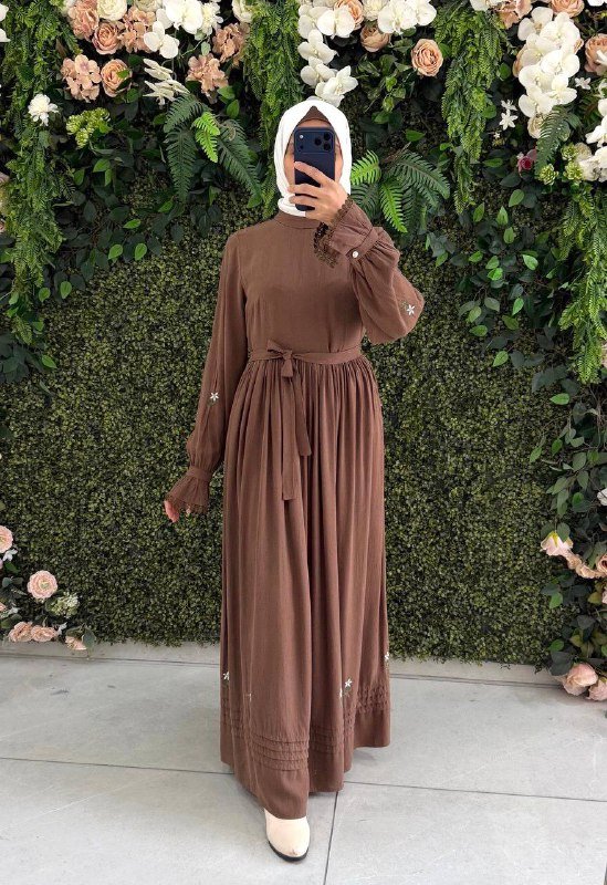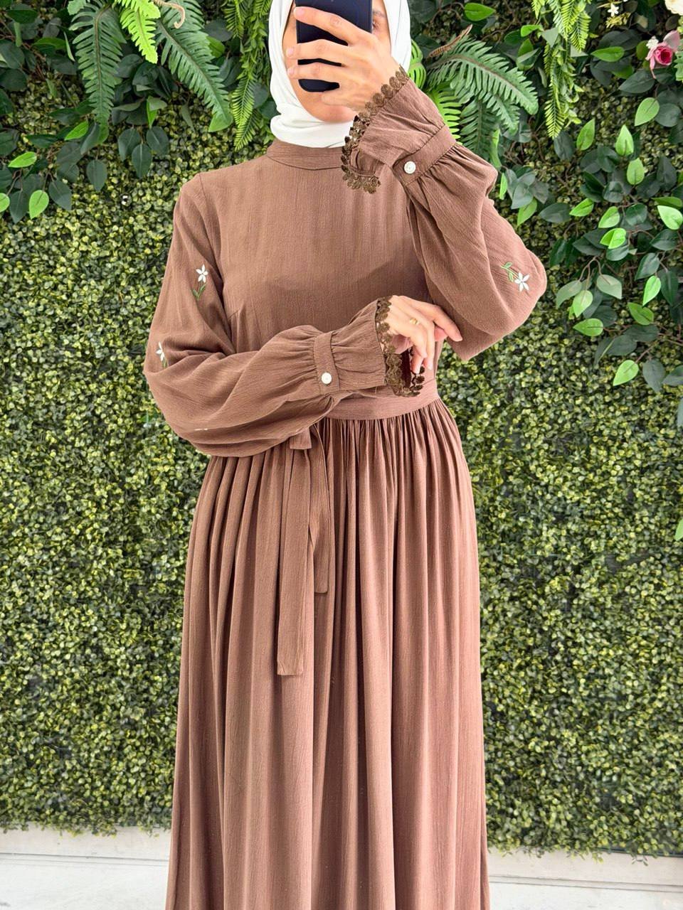 فستان أوركيد بلمسة الورد المميز مع حزام | بنيفستان أوركيد بلمسة الورد المميز مع حزام | بني