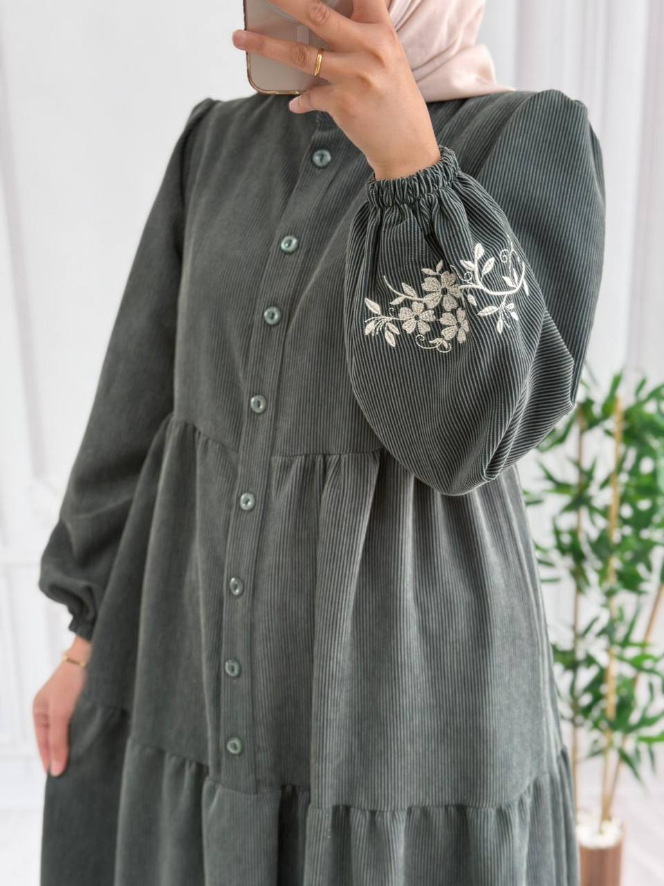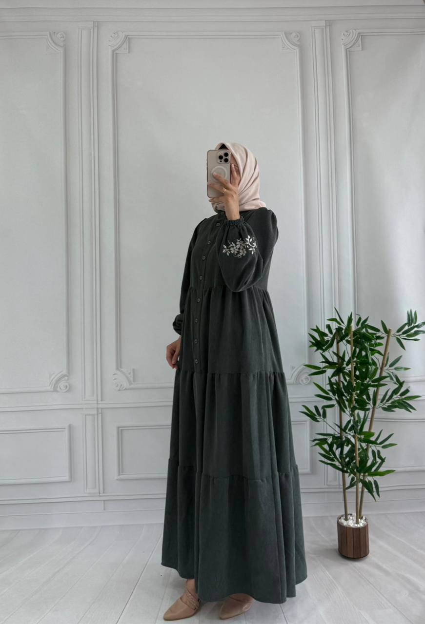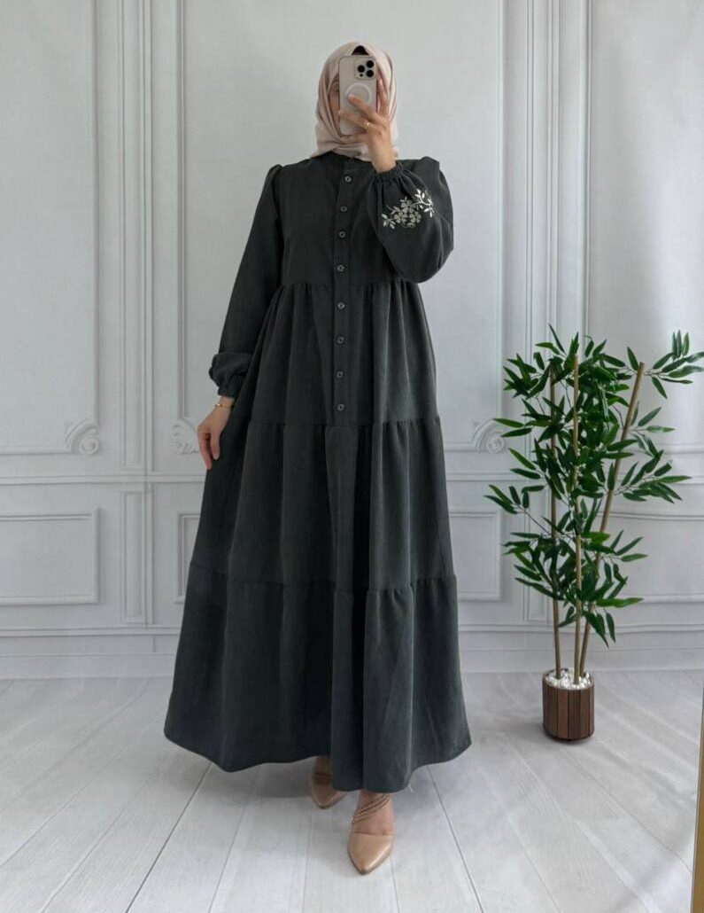 فستان رونق – فستان طويل قماش تشانيل بتطريز أنيق | زيتي