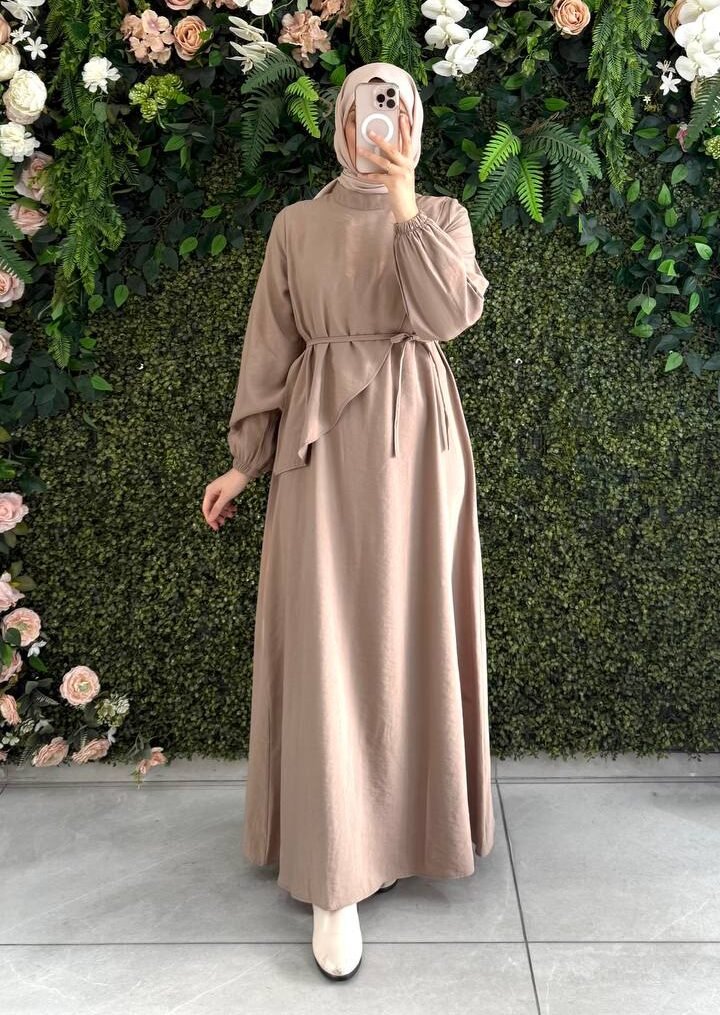 فستان توليب مع ربطة | بيجفستان توليب مع ربطة | بيج