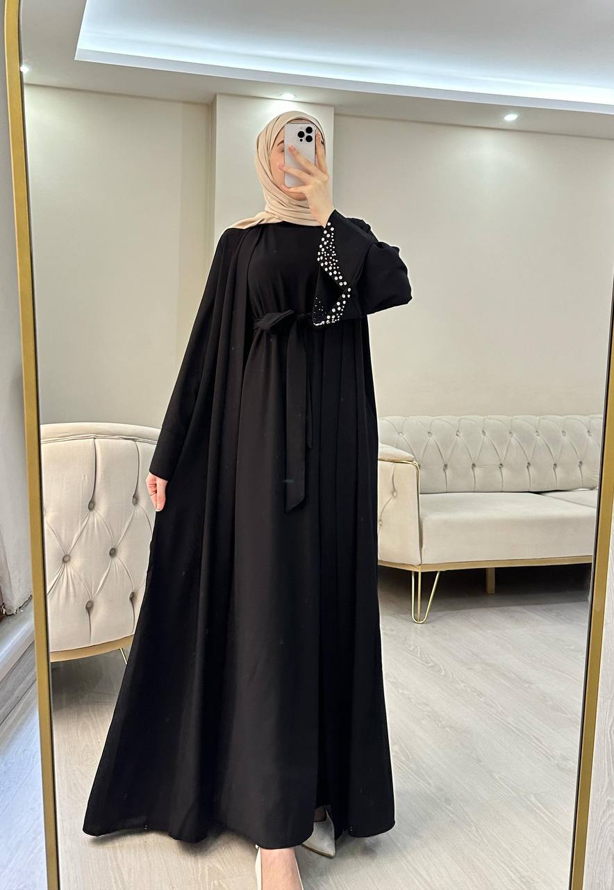 عباية قطعتين ستراس على الكم أسود