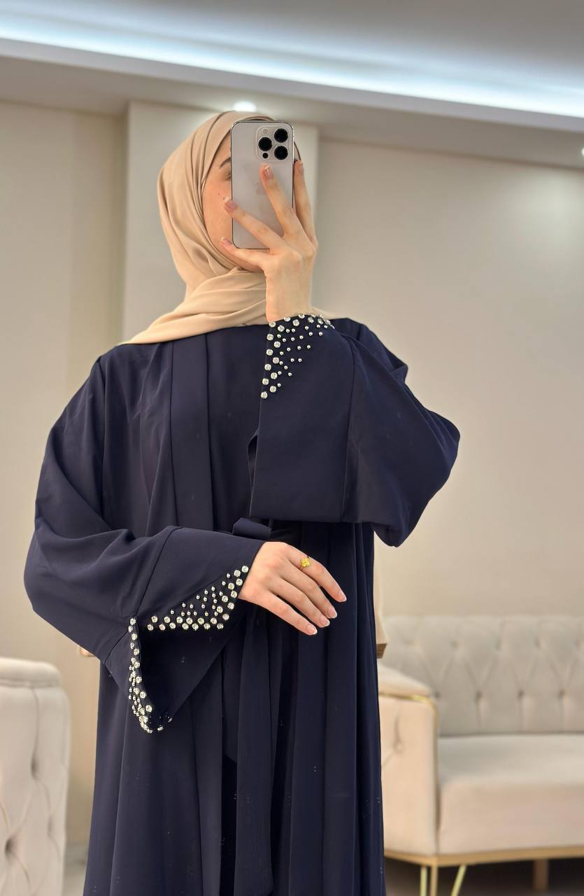 ✨عباية قطعتين ستراس على الكم أسود ✨